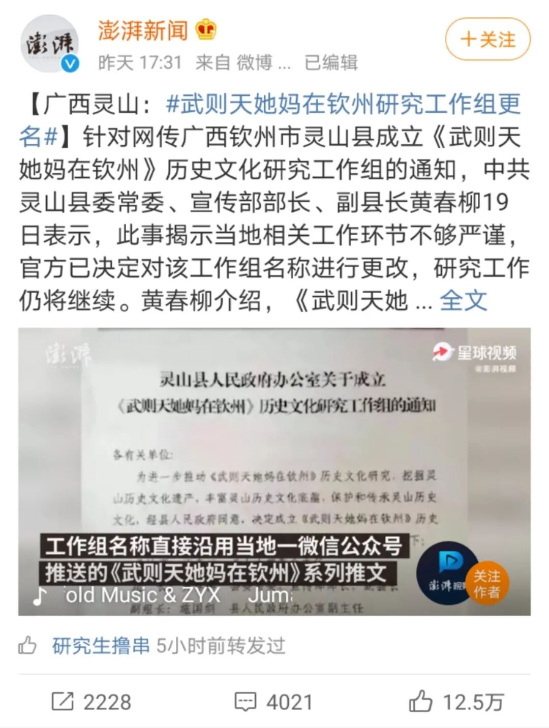 真的有研究组叫《武则天她妈在钦州》