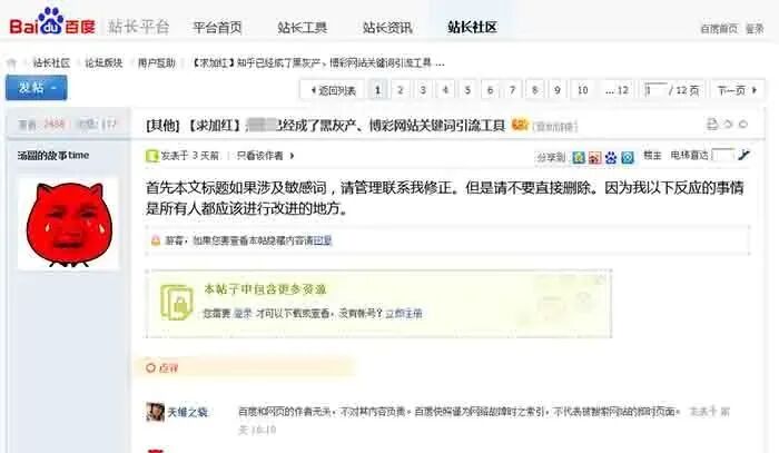 最近在百度论坛上看到这样一个爆料,关于黑产行业利用搜索引擎推广的内容。大概的内容是一些搞灰产的摸出了搜索的规则(不知道是自己摸索的,还是有人提供方便,反正就是能搞到流量),让不合规定的业务在借助高权重网站布局关键词实现百度霸屏引流,扰乱正规行业站排名,获得流量,要知道这些业务本身就充满了危险性,用户容易上当受骗,轻则泄露个人信息,重则财产损失。而且这类业务正常推广是推不了的,审核过不了。而且平台或代理在知道是这类产品的时候,也会直接拒绝掉。